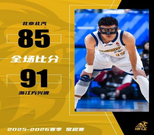 CBA常规赛第8轮,浙江方兴渡客场挑战北京北汽。开局浙江方兴渡打出8-2开局,随后对手连续追击,在第二节一度完成反超。下半场两队打得难解难分,双方互有对攻。关键时刻,布朗个人连得8分,为浙江方兴渡稳住胜局。最终浙江方兴渡以 91-85 战胜北京北汽,在终结对手7连胜的同时,收获6连胜!