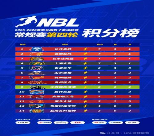 2025-2026赛季NBL常规赛第四轮比赛于12月31日全部战罢。