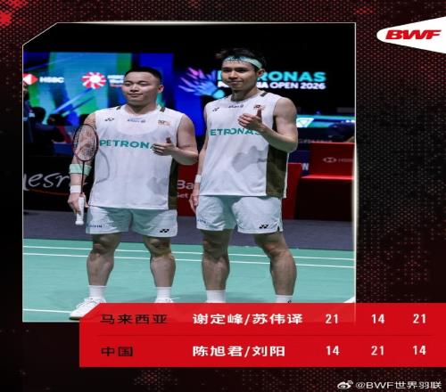 体育播报1月8日宣 马来西亚羽毛球公开赛次轮,陈旭君/刘阳1-2不敌谢定峰/苏伟译,无缘男双八强。