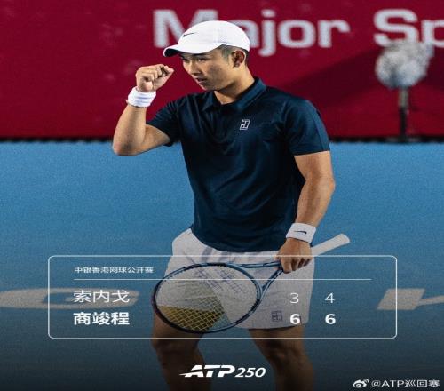 商竣程20击败5号种子索内戈,晋级中国香港网球公开赛八强