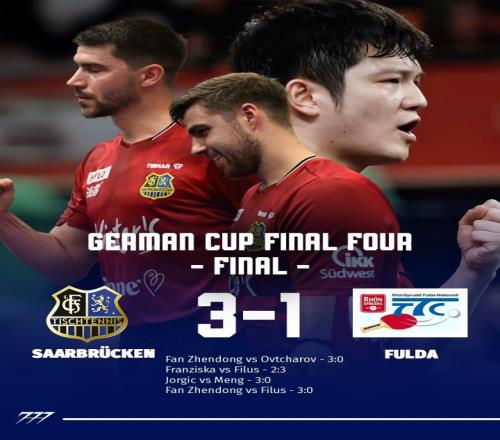 留洋生涯首冠!樊振东决赛独得2分,率萨尔布吕肯夺得德国杯冠军
