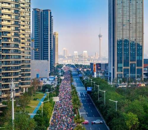横琴马拉松浩荡的人流如同一条彩色的河流。(袁天晓 摄)