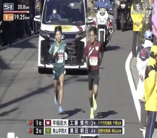 队中王牌黑田朝日在五区坡路上,一路赶超四所高校,带领队伍从落后3分钟到夺得往路优胜,展现了一次史诗级追击。