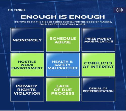 2025年3月,PTPA一口气对四大网球组织ATP、WTA、国际网球联合会(ITF)和网球反兴奋剂机构发起诉讼,指责这些垄断组织对球员的利益进行了不同程度的压迫——剥削球员的天赋、压低球员的收入、并且危及球员们的健康。
