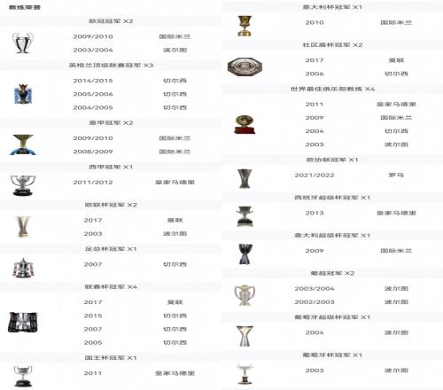 欧冠冠军2个:2009/10赛季(国米)、2003/04赛季(波尔图)