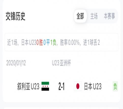 这是日本U23与叙利亚U23在本届U23亚洲杯的首场比赛。在2020年的U23亚洲杯中,双方曾有过一次交手,叙利亚U23以2-1战胜日本U23。