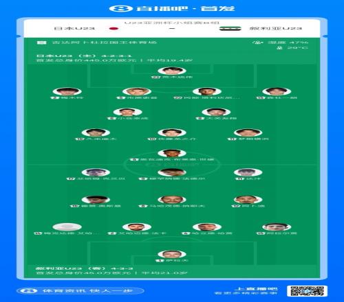 体育播报01月07日宣 北京时间今晚19:30,U23亚洲杯小组赛B组,日本U23vs叙利亚U23。赛前,双方首发出炉。