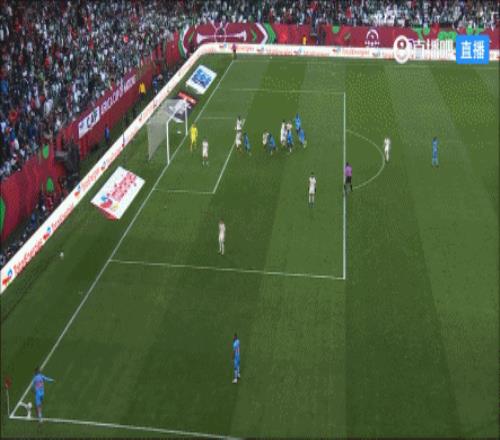 第81分钟,阿尔及利亚前场左侧任意球吊入禁区,马扎头球攻门顶偏。↓