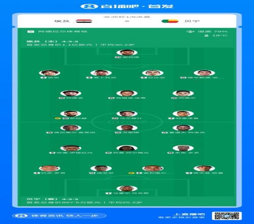 非洲杯埃及vs贝宁首发:萨拉赫、马尔穆什、特雷泽盖先发