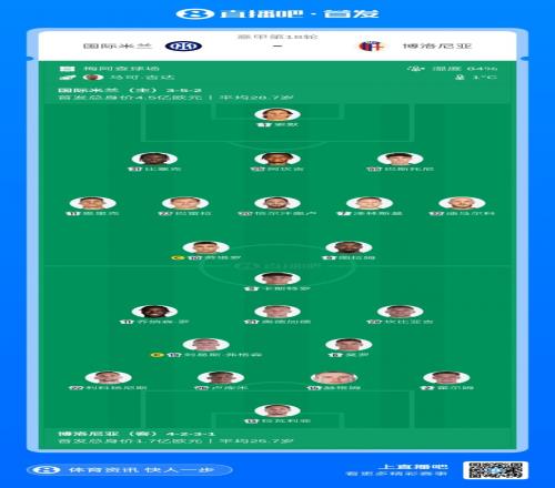 国米vs博洛尼亚首发:图拉姆搭档劳塔罗,泽林斯基、巴雷拉登场