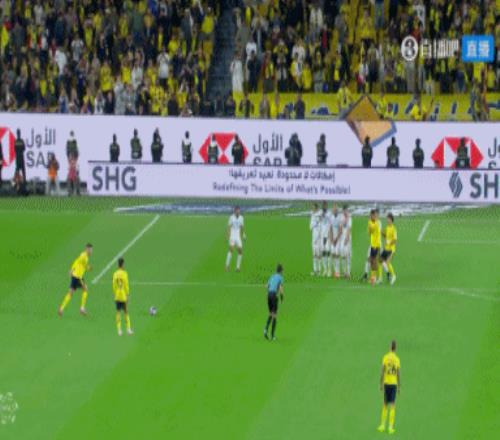 体育播报12月27日宣 沙特联第11轮,利雅得胜利vs阿科多,比赛第17分钟,C罗一脚任意球攻门被门将扑出。