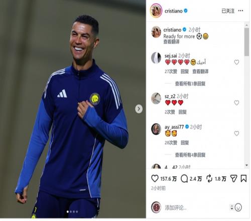 笑容满面!C罗社媒晒训练照片:准备迎接更多