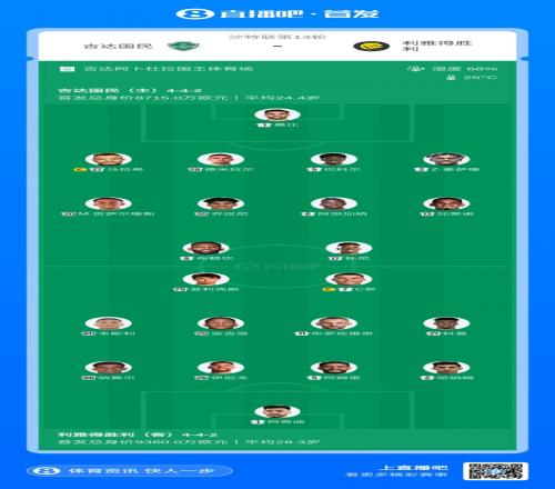 体育播报1月3日宣 北京时间1月3日1:30,沙特联第13轮,吉达国民vs利雅得胜利。赛前双方公布了本场比赛的首发名单。