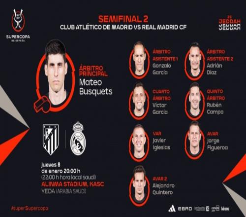 体育播报1月6日宣 西班牙足协公布了西超杯的裁判安排,德·梅拉执法巴萨vs毕巴,马特奥·布斯克茨·费雷尔执法皇马vs马竞。