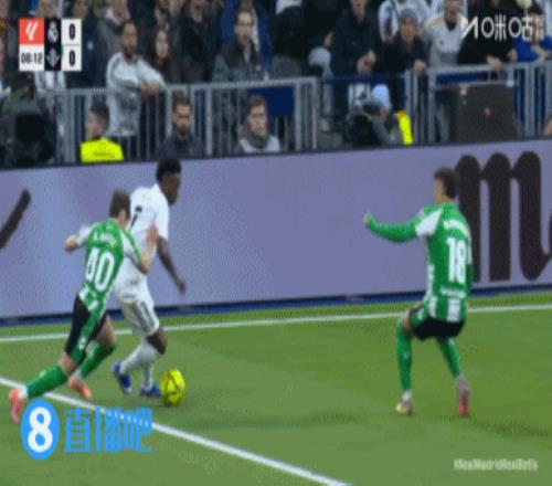 比赛第6分钟,皇马坐镇伯纳乌球场迎战皇家贝蒂斯,维尼修斯在尝试突破安赫尔·奥尔蒂斯与德奥萨的防守时,被对方从背后推倒,但主裁判并未指向点球点,视频助理裁判也未对这一判罚进行更正。