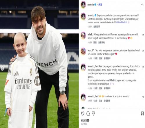 生涯处子球!阿森西奥社媒晒同重病小球迷合照:你是我的幸运星