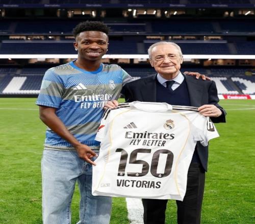 维尼修斯达成西甲150胜里程碑!老佛爷亲自为其送上纪念球衣