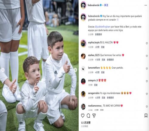 巴尔韦德也在赛后通过社媒晒出自己的两个儿子出任球童的照片,贝林厄姆在赛前仪式环节代为照顾他的大儿子Beni。
