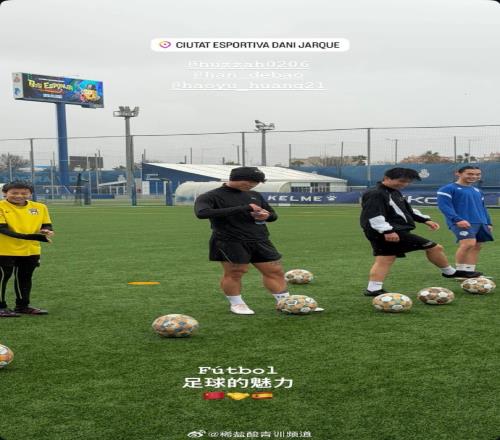 国脚谢文能现身西班牙人训练基地,韩德宝等小将一同参与训练