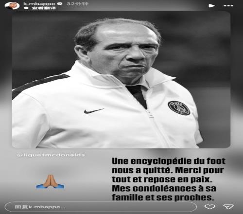 姆巴佩社媒配文写道:一位足球百科全书与我们永别了。感谢您所做的一切,愿您安息。在此向您的家人与挚友致以哀悼。