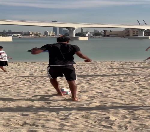 融入其中!亚马尔现身迪拜海滩,与孩子们一起踢球