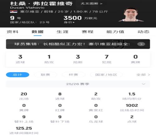 弗拉霍维奇现年25岁,塞尔维亚前锋。本赛季他为球队出场20次,贡献8粒进球和2次助攻,目前其德转身价为3500万欧。