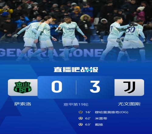 体育播报1月7日宣 意甲第19轮,萨索洛坐镇主场三色旗球场迎战尤文图斯。上半场,卡卢卢造穆哈雷莫维奇乌龙。易边再战,米雷蒂失良机后破门,戴维传射建功。最终萨索洛0-3尤文。积分榜方面,尤文36分暂升第四,萨索洛23分第十。