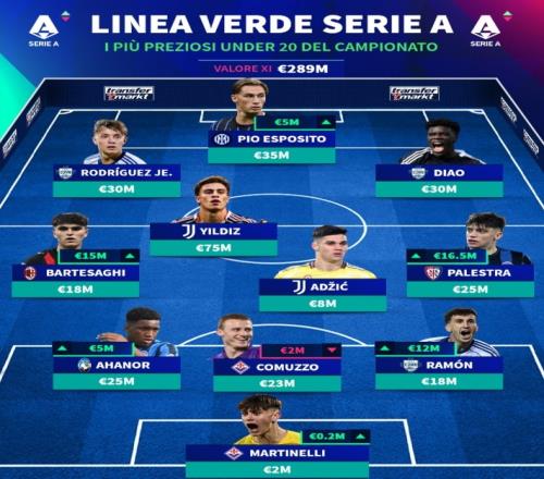 意甲U20最贵阵:伊尔迪兹7500万欧领衔,巴尔泰萨吉、皮奥在列