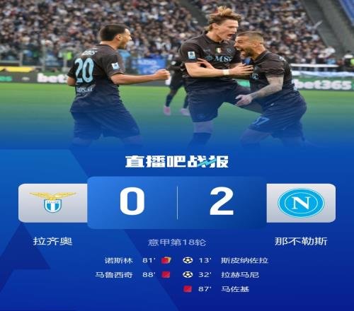 全场比赛结束,那不勒斯2-0战胜拉齐奥。