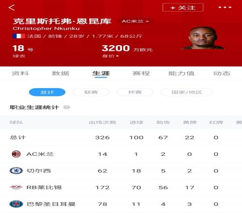 今夏米兰为恩昆库支付了3700万欧的转会费,现要价3500万欧,若成交将实现小幅资本收益。