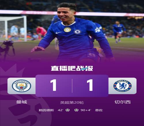 遭绝平!曼城11切尔西距榜首6分恩佐绝平赖因德斯破门格瓦伤退