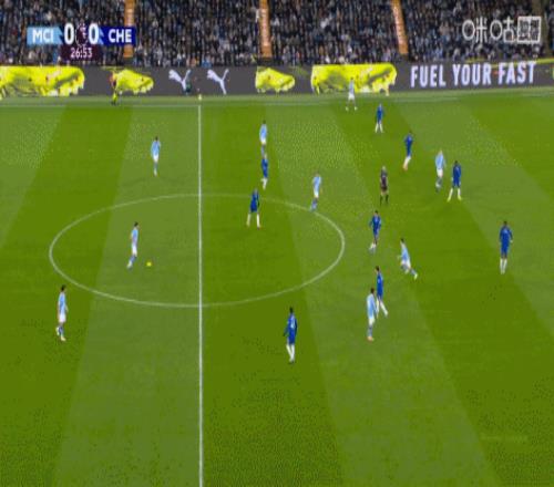 第90+4分钟,古斯托右路人球分过,随后突入禁区右侧传中,帕尔默没有抢到这点,恩佐第一脚射门没有踢好,随后马上补射将球打进,切尔西1-1曼城。↓