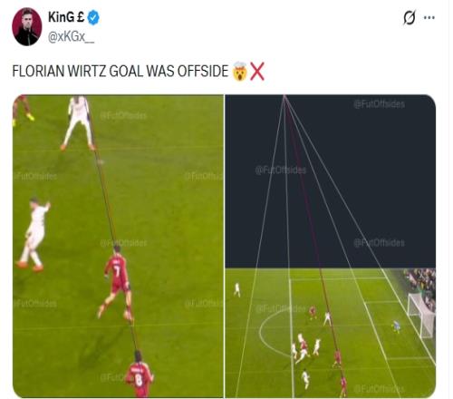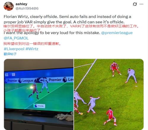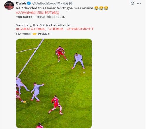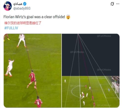 很多球迷也晒出与英超划线不同的画面,认为维尔茨越位了。