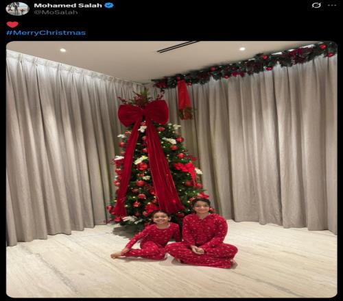 萨拉赫此前连续多年会在圣诞节晒出带有家庭元素的照片,今年他晒出了11岁的女儿Makka和5岁女儿Kayan坐在圣诞树前的照片,配文“圣诞快乐”,简短的文字却在社交媒体圈掀起了一场风暴。