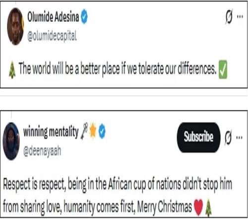 此外也有球迷认为:“如果我们能够容忍彼此的分歧,世界将会变得更美好。”,另一人评论称:“尊重就是尊重,在参加非洲杯足球赛期间也不妨碍他分享爱,人性是第一位的,圣诞快乐。”
