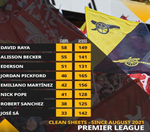 门神!拉亚英超首秀以来联赛零封58场,英超门将同期最多