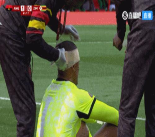 第38分钟,安哥拉门将马奎斯头部出血,他在包扎之后继续比赛。↓