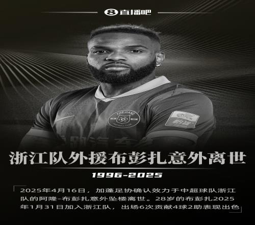 就在王钰栋逐步走向前台、崭露头角之时,浙江出现一起十分意外的事故,让外界的焦点转向了另外一个维度。外援布彭扎在自己居住公寓不慎跌落后不幸坠亡,令人惋惜。起初本土媒体报道时、很多人不太相信这是真的;之后,加蓬媒体证实可靠性。