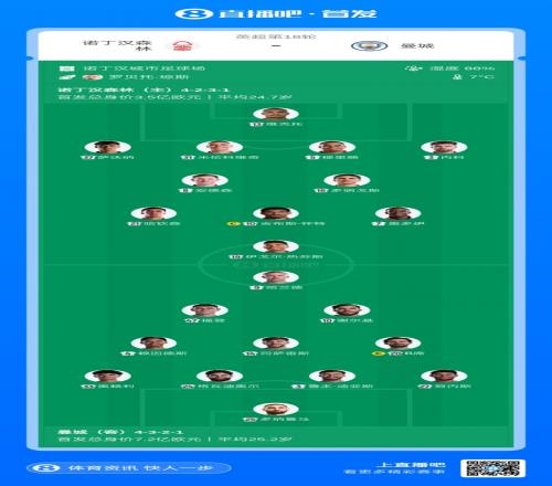诺丁汉森林首发:13-约翰·维克托、5-穆里略、3-内科·威廉姆斯、31-米伦科维奇、37-萨沃纳、8-埃利奥特·安德森、21-哈钦森、10-吉布斯·怀特、16-多明戈斯、7-奥多伊、19-伊戈尔·热苏斯