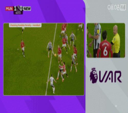 体育播报12月27日宣 曼联1-0击败纽卡,比赛第64分钟VAR一度介入,审查曼联后卫利桑德罗·马丁内斯是否在禁区内手球。