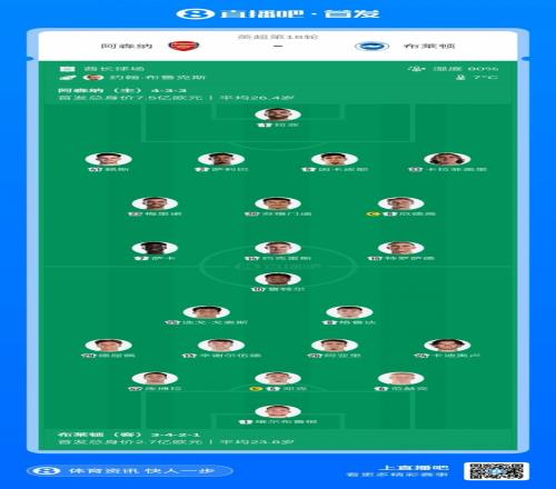 阿森纳vs布莱顿首发:卡拉菲奥里热身受伤&斯凯利顶替,廷伯缺席