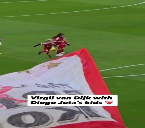 永不独行范戴克赛前带领若塔孩子在安菲尔德踢球
