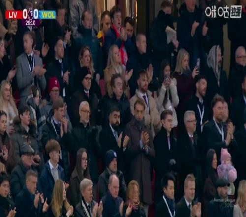 体育播报12月27日宣 利物浦vs狼队,比赛进行至第20分钟,镜头给到看台,球迷们都在鼓掌。