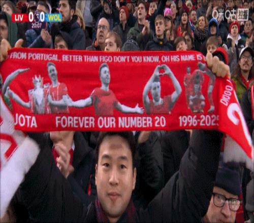 第21分钟,现场球迷一起高唱若塔之歌。↓