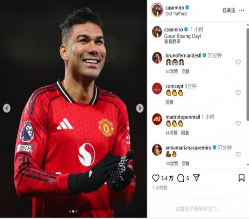 体育播报12月27日宣 今天凌晨,曼联在英超联赛1-0击败纽卡斯尔,卡塞米罗赛后更新Instagram庆祝胜利。
