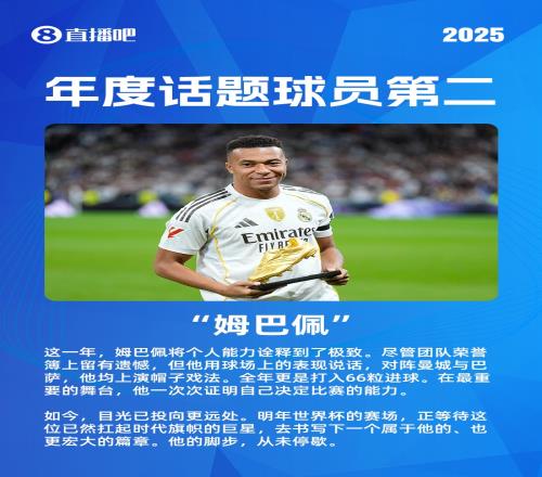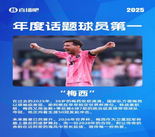 直播吧2025十大话题球员:梅西三连霸,姆巴佩C罗二三,利物浦3人