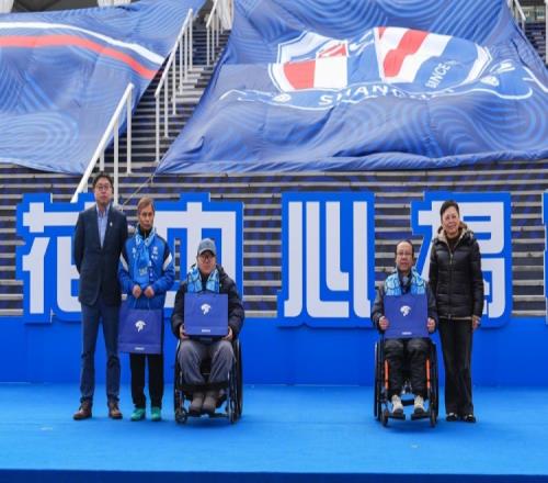 仪式现场,俱乐部向“申花中心”藏品捐赠球迷代表颁发捐赠证书。徐汇区体育局和申花俱乐部分别向来自徐汇区残联以及湖南路街道阳光中心的三位公益球迷代表赠送纪念品。“申花中心”正式开业后,俱乐部将与上海市区相关单位紧密合作,每月定期举办公益专场活动,邀请来自全市各区的残疾人朋友、特殊教育学校的师生以及其他公益群体,免费参观体验,并配备专门的讲解与服务保障,让“申花中心”不仅是一个展示荣耀的殿堂,更能成为一个传递温暖、共享快乐的平台。让体育的阳光,照亮更多角落;让蓝色的关爱,温暖整座城市。最后,现场的领导和嘉宾共同登台,为“申花中心”揭幕按下启动按钮。