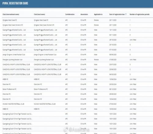 最新的FIFA国际禁赛列表,国内男足职业俱乐部仅剩定南赣联一家
