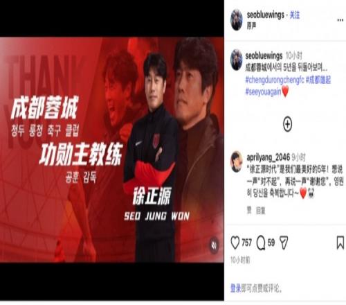 今日徐正源更新社媒,晒出这个视频集锦,并配文写道:“回顾执教成都蓉城的这5年时光…”