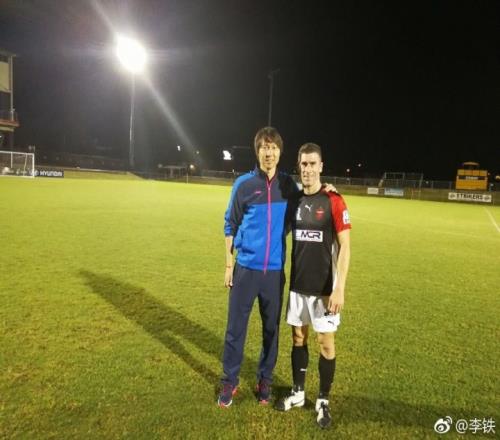 李铁与谢菲联老队友尼克-蒙哥马利相逢,当时蒙哥马利还未退役,效力的正是武汉卓尔热身赛对手卧龙岗狼队。